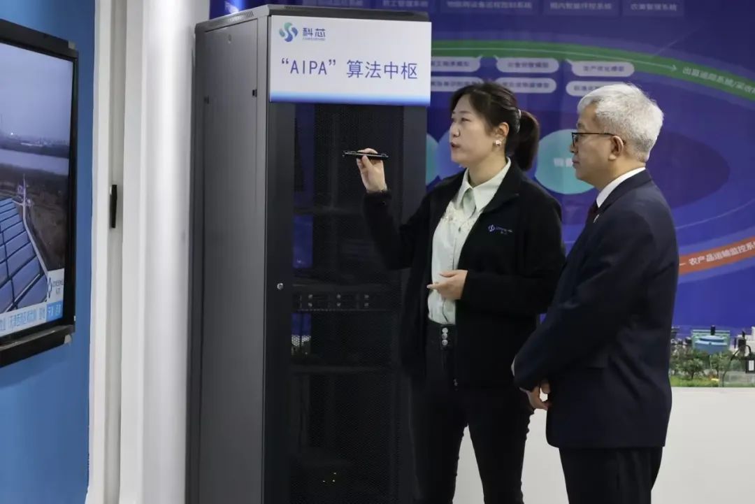 调研过程中,张文培从科芯的发展历程、知识产权架构、科芯“AIPA”算法中枢、六三战略、“AIPA”研究院等信息进行了详细介绍。