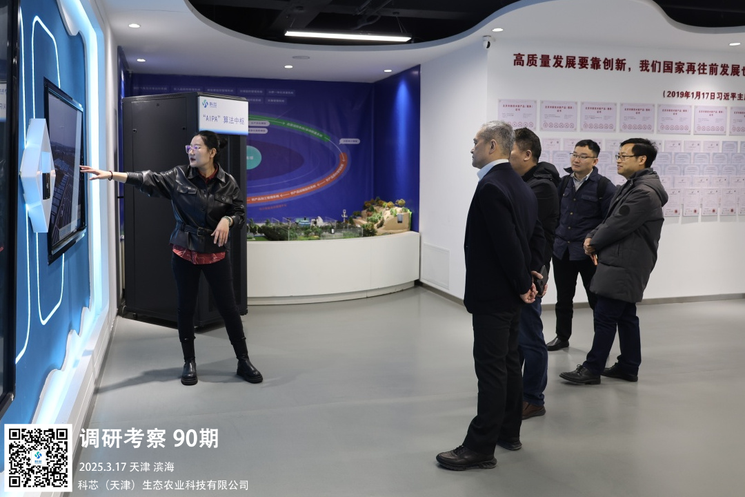 调研过程中,张慧杰详细介绍了科芯的发展历程、知识产权架构、科芯“AIPA”算法中枢、六三战略、“AIPA”研究院、科芯“AIPA”云种植舱、“AIPA”集控中枢等版块及内容。